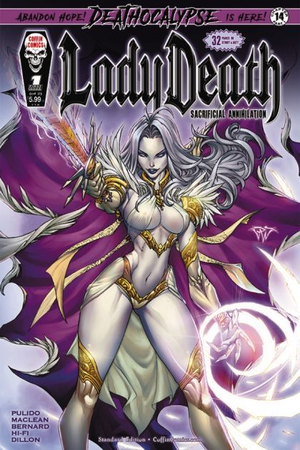 Deathocalypse, an official year-long company-wide event unfolds here! Heroes have fallen. Cities lay under siege. And swarms of progeny fill the skies, blotting out the sun. It seems no one can stand against the awesome power of Insurrectus. Bred to destroy worlds, the ruthless tyrant now sets his sights beyond Earth, commanding vicious hordes to invade every corner of the Infinityverse. Humanity's only hope lies in Hell's most fearsome warrior witch - Lady Death! There can be only two outcomes for our deadly diva: victory or total Deathocalypse!