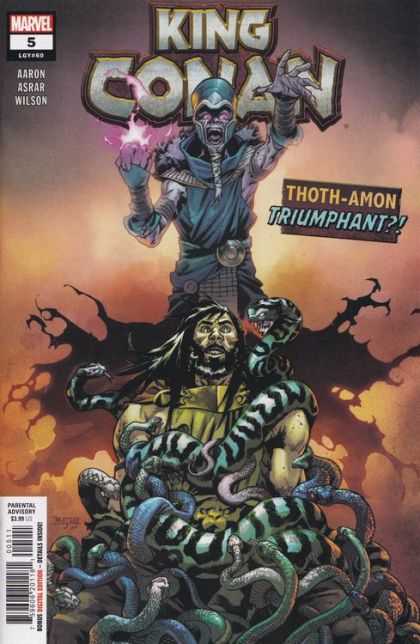 THE TERRIBLE TRIUMPH OF THOTH-AMON! • For years, THOTH-AMON has attacked CONAN from afar...now, at last, they stand face-to-face on this cursed isle to enter into what may be their FINAL BATTLE! • Will the showdown for the ages truly end the reign of Conan and his heirs? • And - a glimpse into the never-before-revealed past of the Stygian wizard - from the boy worshipping Set to the sorcerer who will strike fear into the Hyborian Age with the utterance of the name THOTH-AMON! PARENTAL ADVISORY