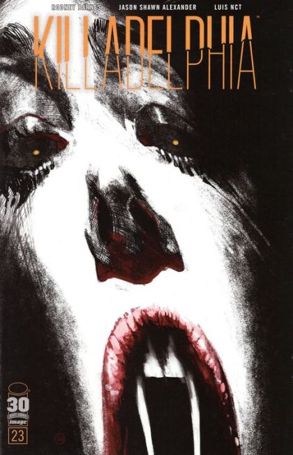 "THE END OF ALL," Part Five The sold-out, Eisner Award-nominated horror series rages on with more mind-bending twists! From Rodney Barnes, the writer behind such hit shows as Marvel's Runaways and STARZ's American Gods, and JASON SHAWN ALEXANDER, the artist who redefined SPAWN. After two and a half centuries, the greatest hero in American history has returned as its greatest threat! George Washington: Commander-in-Chief of the Continental Army, Founding Father, first president of the United States...and undead Vampire King! Now James Sangster and company must fight for the survival of every man, woman, and child in the country. But what can they do against the very leader who won the battle for America the first time around?! Also available in NOIR EDITION, featuring black-and-white line art interiors!