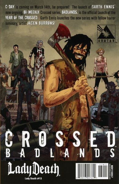 Cover: Gabriel Andrade Writer: Brian Pulido and Mike Wolfer Art: Gabriel Andrade No one believed it was even possible, but the leader of the rebellion against Death Queen has been murdered, and it could spell doom for the forces who oppose the maniacal empress. Accompanied by the villainess who once thirsted for her blood, Lady Death and the terrifying Stigmata arrive at the secret, jungle rendezvous of tribal leaders, but will they be greeted as heroes or reviled as enemies? Throughout the Under Realm, Death Queen has begun a nihilistic assault against those who oppose her, but without a clearly-defined leadership and one, true sword to lead them, the rebellion will surely fail? Available with a Regular cover by artist Gabriel Andrade, a Wraparound cover by Richard Ortiz, and a retailer order incentive Art Deco cover by painter Michael Dipascale!