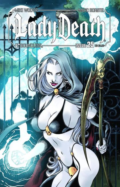 This is it: The most incredible turning point in the history of the LADY DEATH series itself! Having returned to the Under Realm Lady Death finds that everything she knew and understood about herself, her magical heritage and her powers have been irrevocably shattered. Not only must she come to terms with new abilities which make her the true embodiment of Death, Hope must also contend with an Under Realm ruled for seven years by her half-sister Tormina. Welcome to the debut of the incredibly lush, painted illustrations of new series artist Marc Borstel! Available with Regular and Wraparound covers by Pow Rodrix, Sultry cover by Renato Camilo, and incentive Art Deco cover by painter Michael Dipascale!