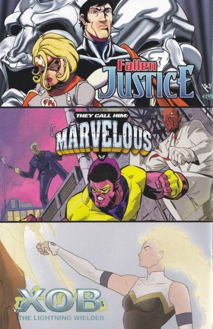 "They Call Him Marvelous (Jamaal Simpson, David Jaxon, Shean Barbour) The climactic conclusion starts here as a genetically enhanced Malcolm confronts Clyde, Jim-Bob, and Mr. Hudson in a showdown of marvelous proportions. "Fallen Justice" (Cary Kelley, Steven Forbes, Harold Edge): Unlikely alliances are forged and the final battle is waged as Dynagirl's desperate plan is revealed. Will even the combined might of all the heroes and villains be enough to stop Justice Theta? "Green Tempest" (Brett Scheuerman, Javier Lugo): The peaceful world of Tempet is thrown into chaos by the malevolent Halestorm as revenge against his foe, Green Tempest. Now Green Tempest must decide: Destroy his nemesis, or show Hailstorm the error of his ways? "XOB" (Kyrun Silva, David Jaxon): Lord Eklips begins his first assault on Greenhill. As XOB and Danny scramble to figure out a plan to stop him, Eklips reveals his true intentions and why his hatred for XOB runs so deep.