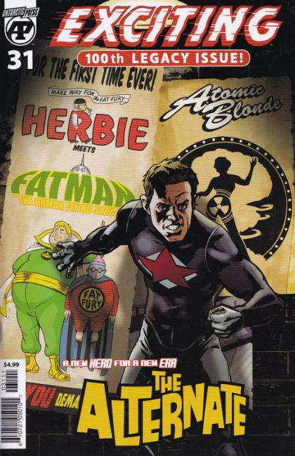 "The Alternate, Chapter 1: Crossover" (Jeff Winstead, Daniel Gete, Dean Kotz), "Atomic Blonde" (Dan Johnson, Dan Gorman), "Fatman Meets the Fat Fury: Two Tons of Fury" (John Holland, Larry Guidry). 56-page 100th Legacy issue! "The Alternate, Chapter 1: Crossover" (Jeff Winstead, Daniel Gete, Dean Kotz): Mettle is the world's first and only super-being. His powers have made him a celebrity, a movie star, an idoloccasionally a hero, so long as it doesn't conflict with a Tonight Show appearance. Flung into an alternate universe in the aftermath of an alien invasion, Mettle now finds himself stranded on an Earth littered with superhumans, including a stronger, smarter, and more heroic version of himself...Metalman! "Atomic Blonde" (Dan Johnson, Dan Gorman): At the height of WWII, the Nazis have acquired an atomic weapon, and they have London in their sights. Only the Atomic Blonde can stop the mad scheme that could shift the war in favor of the Axis, but will saving England be her final heroic act? "Fatman Meets the Fat Fury: Two Tons of Fury" (John Holland, Larry Guidry): For the first time ever, two Silver Age icons-Fatman the Human Flying Saucer and Herbie Popnecker, the Fat Fury-return for the ultimate teamup! But will they be friends or enemies? Find out in an all-new adventure!