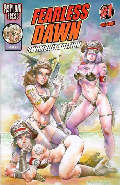 Steve Mannion's Fearless Dawn comics have always been about good art and fun and this latest offering is no exception! 32 pages of straight-up beach going action and fashion! Throw in a monster or two, and some machine guns and you know what we're talking about. See all of Steve Mannion's sexy heroines in full beach Bikini glory! Your mouth will drop when you peek at Fearless Dawn, Betty and Helga as they try on the latest skimpy swimwear and lingerie! Surf's up!