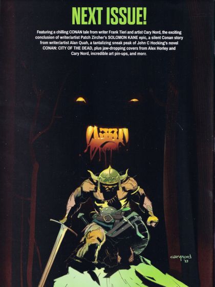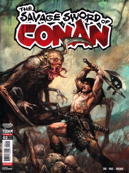 THE RETURN OF A CULT CLASSIC TITLE! THE SAVAGE SWORD OF CONAN continues its triumphant return from Heroic Signatures and Titan Comics! Featuring a new CONAN epic from writer Jim Zub and artist Richard Pace, the exciting continuation of writer/artist Patch Zircher's SOLOMON KANE tale, spectacular covers from Dave Dorman and Nick Marinkovich, jaw-dropping art pin-ups, and more, THE SAVAGE SWORD OF CONAN Issue #2 is an onslaught of awe-inspiring adventure.