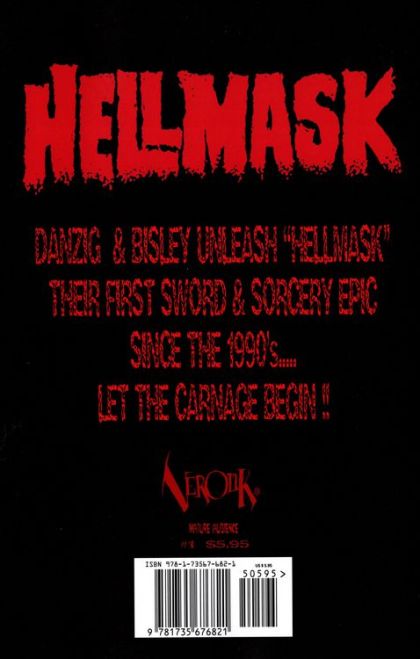 Fresh from Hellmask's first appearance in the Verotik 30th Anniversary Comic, Danzig & Bisley's Hellmask gets his own book! Their first Sword & Sorcery character since the incredible Death Dealer #1, Hellmask cuts a bloody path of carnage and brutality through the kingdom's enemies. Sweet painted cover by Simon 'Biz' Bisley!