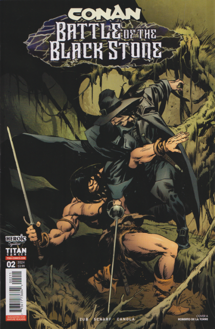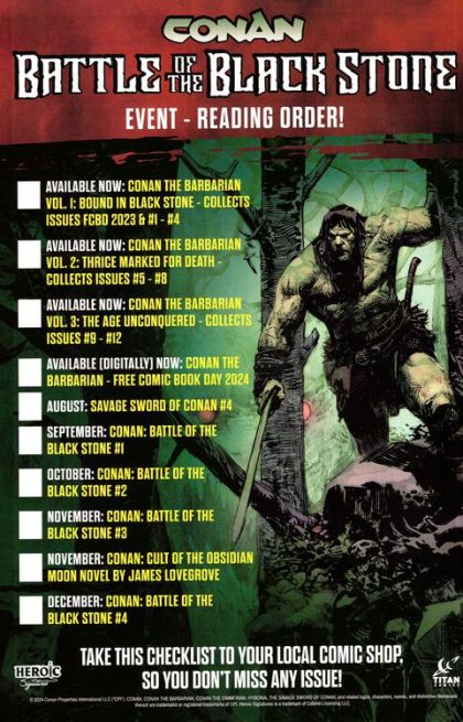 CONAN OF CIMMERIA is haunted by shadows, living nightmares connected to a mysterious eye symbol etched in BLACK STONE. An unspeakable evil looms over the Hyborian Age and every age connected to it... and it will take more than a lone barbarian to stop its relentless march upon time, space, and sanity. BATTLE OF THE BLACK STONE, an epic new CONAN EVENT from Heroic Signatures and Titan Comics, begins HERE, from Jim Zub (Conan the Barbarian, Dungeons & Dragons) and artist Jonas Scharf (Dark X-Men, Basilisk)!