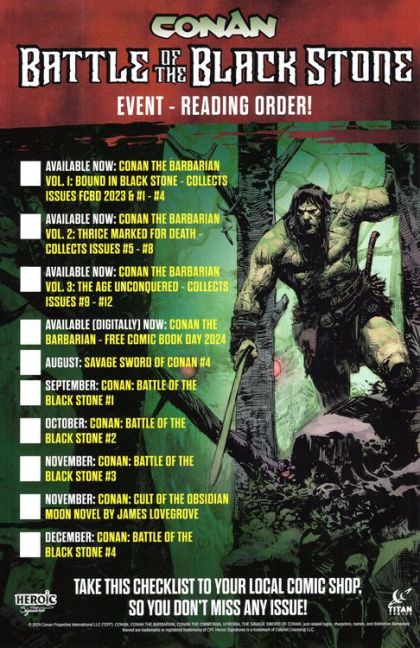 Conan of Cimmeria is haunted by shadows, living nightmares connected to a mysterious eye symbol etched in Black Stone. An unspeakable evil looms over the Hyborian Age and every age connected to it... and it will take more than a lone barbarian to stop its relentless march upon time, space, and sanity. Battle of the Black Stone, an epic new Conan event from Heroic Signatures and Titan Comics, begins here, from Jim Zub (Conan the Barbarian, Dungeons & Dragons) and artist Jonas Scharf (Dark X-Men, Basilisk)!