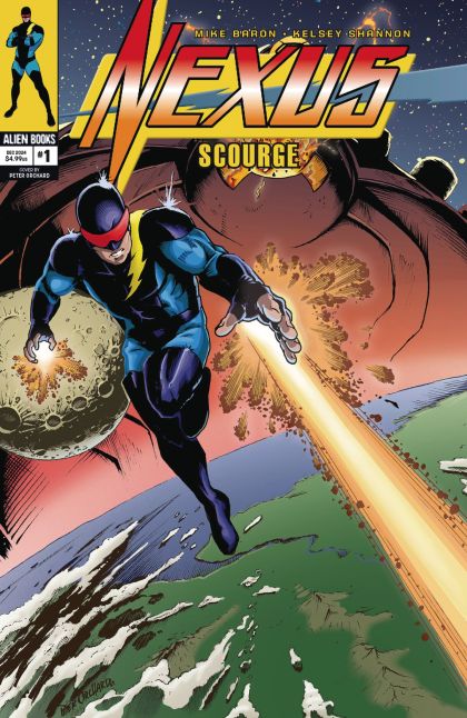The Eisner Award-winning science fiction vigilante is back in a universe-shattering tale that's essential for all Nexus fans! Mike Baron and Steve Rude's Nexus enters a new era with classic characters and an all-new villain that's destroying the universe one planet at a time. It's a breathtaking new vision for the Nexus Universe by series co-creator Mike Baron and up and coming artist Kelsey Shannon (Batman Adventures, GI Joe). Nexus: Scourge is an all-new era of Nexus; a two-issue event by Mike Baron and Kelsey Shannon exclusively from Alien Books! Planet destroying action and a wry wit that's perfect for fans of Hitchhiker's Guide to the Galaxy and classic Doctor Who.