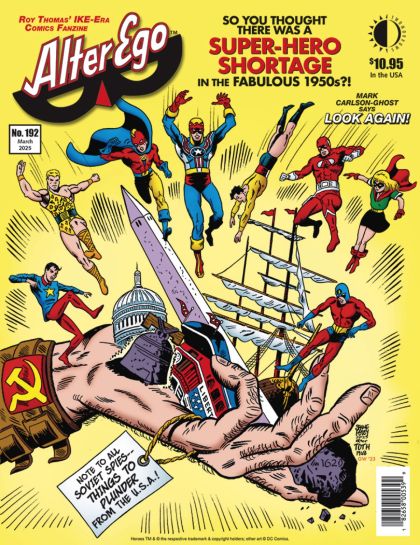 If you thought there was a super-hero shortage in comics between All-Star #57 and Showcase #4-Mark Carlson-Ghost says to think again! In Alter Ego #192, witness the mid-1950s super-hero revival featuring The Human Torch, Captain America, Sub-Mariner, Fighting American, The Avenger, Strongman, Nature Boy, Black Cobra, Phantom Lady, The Flame, Samson, Wonder Boy, Tomboy, and Captain Flash-with art by John Romita, John Buscema, Bill Everett, Joe Simon and Jack Kirby, Mike Sekowsky, Mort Meskin, Bob Powell, and other comicbook greats! Plus Fawcett Collectors of America, Michael T. Gilbert in Mr. Monster's Comic Crypt, and more!