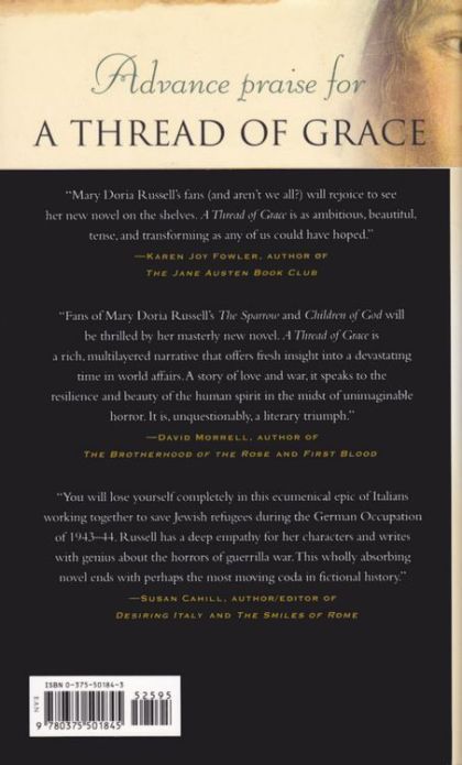Set in Italy during the dramatic finale of World War II, this new novel is the first in seven years by the bestselling author of The Sparrow and Children of God.It is September 8, 1943, and fourteen-year-old Claudette Blum is learning Italian with a suitcase in her hand. She and her father are among the thousands of Jewish refugees scrambling over the Alps toward Italy, where they hope to be safe at last, now that the Italians have broken with Germany and made a separate peace with the Allies. The Blums will soon discover that Italy is anything but peaceful, as it becomes overnight an open battleground among the Nazis, the Allies, resistance fighters, Jews in hiding, and ordinary Italian civilians trying to survive.Mary Doria Russell sets her first historical novel against this dramatic background, tracing the lives of a handful of fascinating characters. Through them, she tells the little-known but true story of the network of Italian citizens who saved the lives of forty-three thousand Jews during the war’s final phase. The result of five years of meticulous research, A Thread of Grace is an ambitious, engrossing novel of ideas, history, and marvelous characters that will please Russell’s many fans and earn her even more.