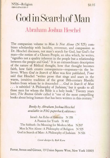 Abraham Joshua Heschel was one of the most revered religious leaders of the 20th century, and God in Search of Man and its companion volume, Man Is Not Alone, two of his most important books, are classics of modern Jewish theology. God in Search of Man combines scholarship with lucidity, reverence, and compassion as Dr. Heschel discusses not man's search for God but God's for man--the notion of a Chosen People, an idea which, he writes, "signifies not a quality inherent in the people but a relationship between the people and God." It is an extraordinary description of the nature of Biblical thought, and how that thought becomes faith.