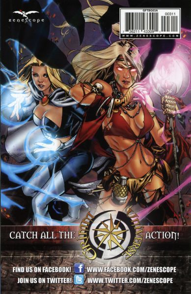 Red Riding Hood, Sela, Samantha and Cross join forces to battle the evil creatures unleashed by the Bad Girls of the zenescope universe but will their combined power be enough to defeat these vicious beasts or will they too fall victim to the most evil women of the Grimm Universe? And how does the realm of Wonderland play into their master plan? Don't miss the baddest series in the history of Grimm Fairy Tales. Featuring two incredible homage covers as Zenescope celebrates its seven year anniversary.