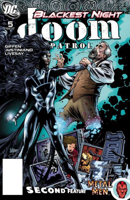 Written by Keith Giffen; co-feature written by Keith Giffen and J.M. DeMatteis Art and cover by Justiniano & Livesay; co-feature art by Kevin Maguire The Doom Patrol battle to the death with their former teammates in this BLACKEST NIGHT tie-in! Faced with the imminent deaths of the entire population of Oolong Island and desperate for options, they abandon their roles as the World's Strangest Super Heroes and take up their new roles?as live bait. Meanwhile, in the Metal Men co-feature, the battle between our robot friends and the living mannequins of The Clique comes to its messy conclusion. On sale December 9 o 40 pg, FC, $3.99 US