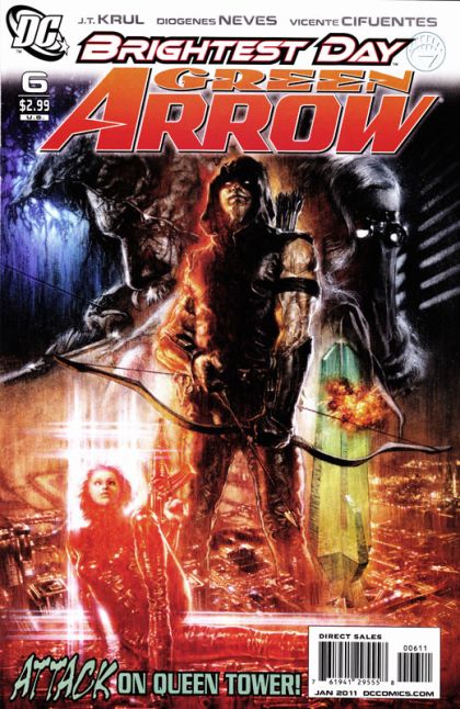 Written by J.T. KRUL Art by DIOGENES NEVES & VICENTE CIFUENTES Cover by MAURO CASCIOLI 1:10 variant cover by RUDOLFO MIGLIARI Green Arrow infiltrates Queen Industries to confront the Queen head-on. What shocking revelations will she reveal - and why is she wearing his mother's ring? The answer may drive Ollie over the edge - again! And what lurks in the shadows that may spell the Emerald Archer's doom?