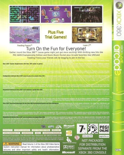 Mit Xbox Live Arcade Compilation für Xbox 360 holst Du Dir nicht nur ein, sondern gleich 5 coole Games auf einmal! Auf Dich warten stundenlanger Spielspaß und jede Menge Action! Auf der Disc sind Pac-Man Championship Edition, Uno, Boom Boom Rocket, Feeding Frenzy und Luxor 2 enthalten!