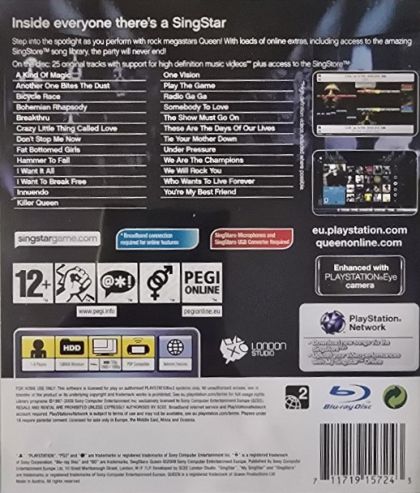 Die Legende lebt! Für echte Rockfans hebt sich der Vorhang zu einer aufregenden und magischen Show in den heimischen vier Wänden. Denn die Kult- Stadionkonzerte von Freddy Mercury und Queen werden mit Unterstützung von Sony Computer Entertainment neu belebt. SingStar Queen lässt Freunde nach den Mikrofonen greifen und die größten Hits dieser legendären Gruppe schmettern.