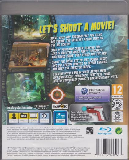"The Shoot" für PlayStation 3 macht dich zum größten Actionhelden aller Zeiten und katapultiert dich mitten in fünf aufregende Filmproduktionen. Du übernimmst die Hauptrolle in "Outlawed", "Robotomus Crime", "Haunted House Party", "The Mob" und "Deep Perils" und schießt für einen Leinwanderfolg Revolverhelden, außerirdische Roboter, Gangster und Geister ab. Das wird ein voller Leinwanderfolg!