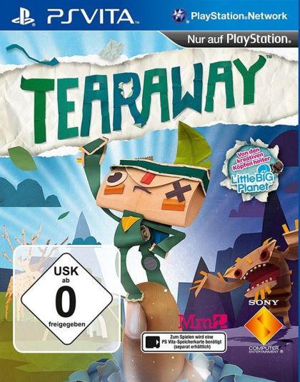 Mit Tearaway wird Ihnen eine Welt komplett aus Papier in Ihre allmächtigen Hände gelegt! In diesem einzigartigen Spiel auf PlayStation Vita begeben Sie sich auf eine Abenteuerreise durch eine spannende Papierwelt mit Ihrem neuen Freund iota, einem mutigen Boten mit einer einzigartigen Botschaft – für Sie! Da Sie eine ganze Welt in Ihren riesigen Händen halten und somit über gottesgleiche Mächte verfügen, können Sie Ihre Autorität mit einer Vielzahl göttlicher Kräfte untermauern und dabei alle Funktionen der PS Vita nutzen – einige subtil, andere nahezu episch. Sie können alles durcheinanderwirbeln oder auf den Kopf stellen – ein feiner Atemzug von Ihnen wird zu einem wilden Sturm. Sie können sogar mit Ihrem Zeigefingern das Rückseiten-Touchpad des PS Vita-Systems nutzen, um Teil dieser einzigartigen Welt zu werden und iota bei seiner speziellen Auslieferung zu helfen.