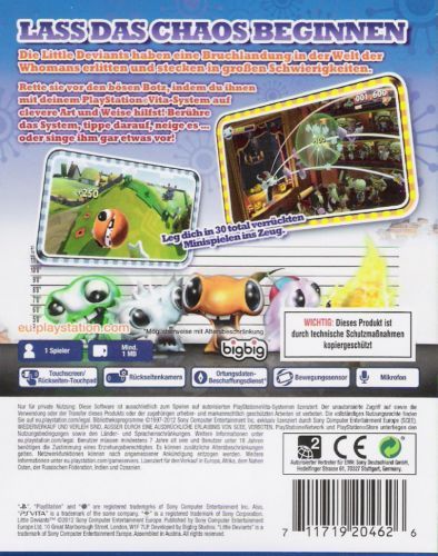 Die Little Deviants haben eine Bruchlandung in der Welt der Whomans erlitten und stecken in großen Schwierigkeiten. Rette sie vor den bösen Botz, indem du ihnen mti deinem PlayStation Vita-System auf clevere Art und Weise hilfst! Berühre das System, tippe darauf, neige es...oder singe ihm gar etwas vor... Leg dich in 30 total verrückten Minispielen ins Zeug!