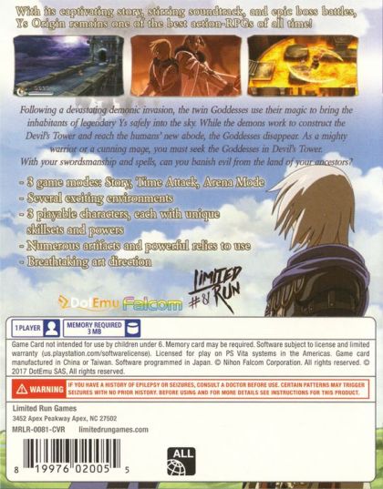 700 years before the events of Ys I & II, the land of Ys was on the brink of destruction. Demons came in droves and forced the twin Goddesses who ruled the land to whisk their subjects away from the surface, into the safe embrace of the clouds. The demons were persistent, however, erecting a massive tower in pursuit. The battle that raged upon the ground had begun ascending for a second round up above.