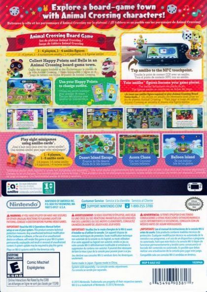 In Animal Crossing: amiibo Festival können Animal Crossing-Fans ihre Lieblingscharaktere aus der erfolgreichen Videospielreihe auf völlig neue Weise erleben – denn es ist Party angesagt! Im Mittelpunkt des lustigen Partyspiels stehen die amiibo-Figuren: Die Fete mit ihnen steigt mit einem umfangreichen, dynamischen Brettspiel, in dem die Jahreszeiten – wie in den anderen Titeln der Animal Crossing-Reihe auch – nach und nach wechseln. Die Aufgabe ist einfach: Die Spieler müssen ihren Charakter zum glücklichsten in der ganzen Stadt machen!