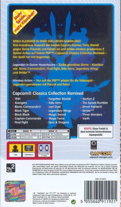 Eine brandneue Auswahl der besten Capcom Games. Trete überall gegen Deine Freunde und Feinde an und erlebe wireless gnadenlose 2 Spieler-Action auf Deiner PSP! Capcom Classics Collection Remixed - Der Spaß hat erst begonnen.