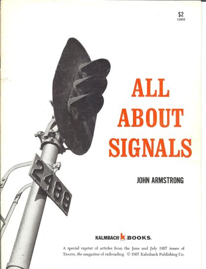 Originally published as a series of article in "Trains" magazine, this booklet describes the history of modern railroad signals: how early signaling developed, how manual block system and automatic block systems work, multiple aspect signaling, signal aspects, indications and types, automatic train control, cab signaling, coded control, mechanical interlocking, automatic interlocking, and Centralized Traffic Control. Illustrated throughout with black and white photos and numerous diagrams. 26 pages.