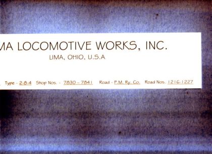 Lima Locomotive Works, Inc., Order No. 1155, Type 2-8-4, Shop Nos. 7830-7841, Road P.M. Ry. Co., Road Nos. 1216-1227 (8 copies)