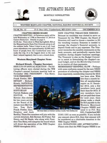 Western MNaryland Chapter, Natl Rwy Hist Soc