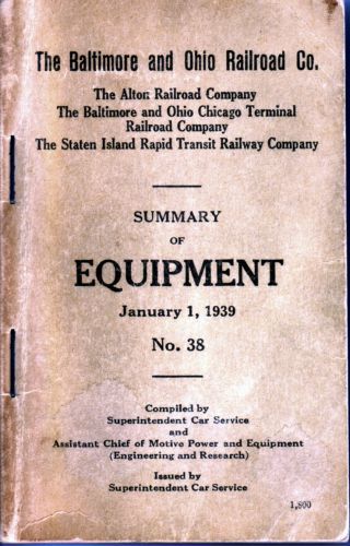 The Baltimore and Ohio Railroad Co. Summary of Equipment, January 1, 1939, No. 38