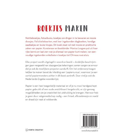 In dit prachtige boek laat Monica Langwe zien hoe je het oude ambacht van boekbinden op een nieuwe en eigentijdse manier kunt toepassen. De boekjes, mappen en doosjes die ze maakt zijn zo mooi, dat je meteen met papier en garen aan de slag wilt gaan.
