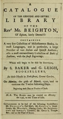 A Catalogue Of The Genuine And Entire Library Of The Revd Mr. Beighton, Of Egham, Lately Deceas'd