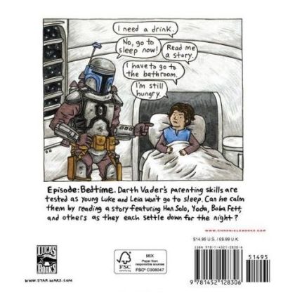 It's time for a Star Wars bedtime story in a galaxy far, far away, and Darth Vader's parenting skills are tested anew in this delightful follow-up to the breakout New York Times Star Wars books bestsellers Darth Vader™ and Son and Vader's™ Little Princess. In this Episode, the Sith Lord must soothe his rambunctious twins, Luke and Leia—who are not ready to sleep and who insist on a story. As Vader reads, the book looks in on favorite creatures, droids, and characters, such as Yoda, R2-D2, Han Solo, Chewbacca, Darth Maul, Admiral Ackbar, Boba Fett, and many others as they tuck in, yawn, and settle down to dream. As ever, Jeffrey Brown's charming illustrations and humor glow throughout, playing on children's book conventions to enchant adults and kids alike. This Star Wars makes a fun, unique pregnancy gift, a new Dad gift, or funny new parent gift!© and TM Lucasfilm Ltd. Used Under Authorization