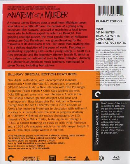 Semi-retired Michigan lawyer Paul Biegler takes the case of Army Lt. Manion, who murdered a local innkeeper after his wife claimed that he raped her. Over the course of an extensive trial, Biegler parries with District Attorney Lodwick and out-of-town prosecutor Claude Dancer to set his client free, but his case rests on the victim's mysterious business partner, who's hiding a dark secret.