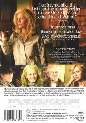 Fiona and Grant have been married for nearly 50 years. They have to face the fact that Fiona’s absent-mindedness is a symptom of Alzheimer’s disease. She must go to a specialized nursing home, where she slowly forgets Grant and turns her affection to Aubrey, another patient in the home.