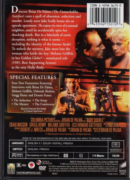 After losing an acting role and his girlfriend, Jake Scully finally catches a break: he gets offered a gig house-sitting in the Hollywood Hills. While peering through the beautiful home's telescope one night, he spies a gorgeous woman dancing in her window. But when he witnesses the girl's murder, it leads Scully through the netherworld of the adult entertainment industry on a search for answers—with porn actress Holly Body as his guide.