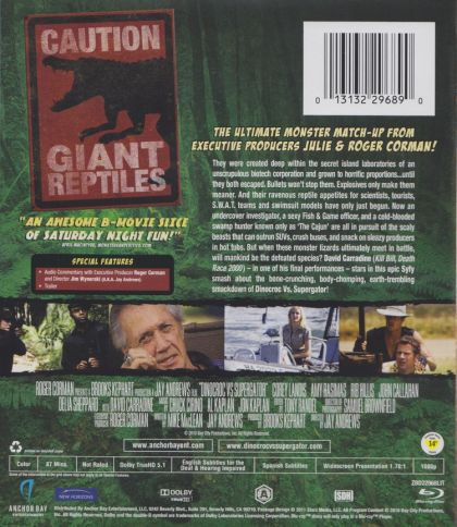 On a lush tropical island, working under a secret government charter, Martin Drake has not only grown sprawling acres of giant vegetables, but inadvertently spawned two mammoth reptiles as well. Now they've broken free of their enclosures, and Drake has only one option: kill the creatures before word gets back to Washington and they close him down. When Drake's first team of well-armed mercenaries gets wiped out within hours of setting down in the jungle, he turns to one lone hunter, The Cajun, to go in single-handedly. But will The Cajun be cunning enough to find the creatures and destroy them before they turn the blue waters red with the blood of tourists. The only hope is to bring the monsters together and make them fight. When one emerges victorious, that will be the time to strike and kill the other. It's a risky plan, but ultimately the only one that may work. One of David Carradine's last movies.