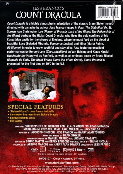 | Writer | Bram Stoker, Erich Kröhnke, Augusto Finocchi, Harry Alan Towers, Jesus Franco, Dietmar Behnke, Milo G. Cuccia, Carlo Fadda | |