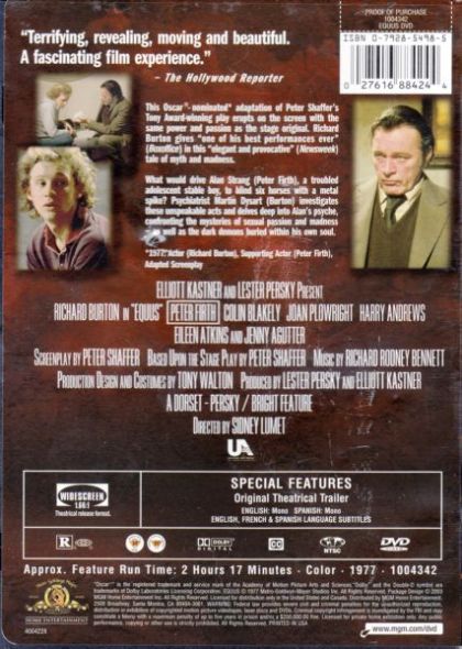 A psychiatrist, Martin Dysart, investigates the savage blinding of six horses with a metal spike in a stable in Hampshire, England. The atrocity was committed by an unassuming seventeen-year-old stable boy named Alan Strang, the only son of an opinionated but inwardly-timid father and a genteel, religious mother. As Dysart exposes the truths behind the boy's demons, he finds himself face-to-face with his own.