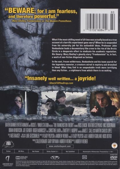 When he is suspended from his university job for his outlandish ideas, Professor John Venkenheim leads a documentary film crew to the rim of the Arctic Circle in a desperate effort to vindicate his academic reputation. His theory: Mary Shelley's ghastly story, "Frankenstein," is, in fact, a work of non-fiction disguised as fantasy. In the vast, frozen wilderness, Venkenheim and his team search for the legendary monster, a creature mired in mystery and drenched in blood. What they find is an unspeakable truth more terrifying than any fiction...a nightmare from which there is no waking.