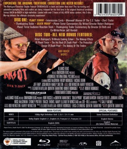 Two full-length feature horror movies written by Quentin Tarantino and Robert Rodriguez put together as a two-film feature. Including fake movie trailers in between both movies.