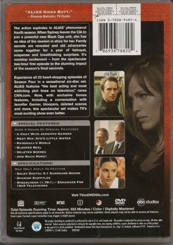 Alias is an American action/drama television series created by J.J. Abrams which was broadcast on ABC from September 30, 2001 to May 22, 2006, spanning five seasons. It starred Jennifer Garner as Sydney Bristow, an agent who had been tricked to believe she was working for the U.S. government but had, in fact, been working for a criminal organization named the Alliance of Twelve. Upon learning this Sydney became a double agent for the real CIA, feeding information from SD-6 to them.