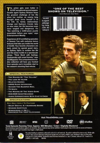 Alias is an American action/drama television series created by J.J. Abrams which was broadcast on ABC from September 30, 2001 to May 22, 2006, spanning five seasons. It starred Jennifer Garner as Sydney Bristow, an agent who had been tricked to believe she was working for the U.S. government but had, in fact, been working for a criminal organization named the Alliance of Twelve. Upon learning this Sydney became a double agent for the real CIA, feeding information from SD-6 to them.