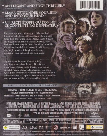 Guillermo del Toro presents Mama, a supernatural thriller that tells the haunting tale of two little girls who disappeared into the woods the day that their parents were killed. When they are rescued years later and begin a new life, they find that someone or something still wants to come tuck them in at night.