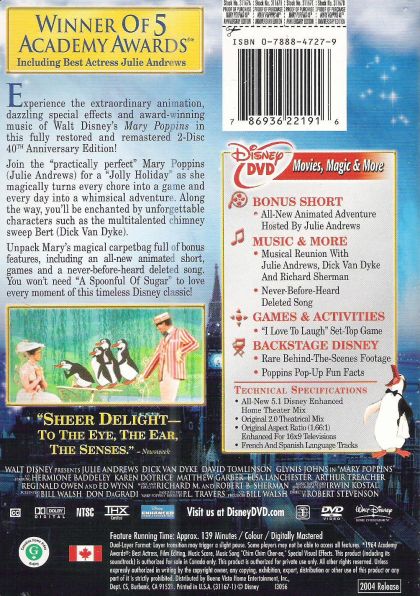 | Writer | Bill Walsh, Don DaGradi, P.L. Travers | |
