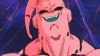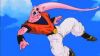 Unknown to the others, Buu secretly separates part of his back, and the two pink blobs creep around behind the others. As soon as Goten and Trunks fuse, one of the blobs encases the Saiyan. Piccolo, too, has been covered by a pink blob. Buu calls each of the blobs back to him, and they combine to form a Super Buu that's even stronger than he was before. Buu and Gohan start to fight, and it's clear that Super Buu has the advantage. Gohan seems unable to keep up with Buu's new speed and strength. Buu taunts Gohan by telling him what his three friends that were absorbed think of him.