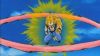 Goku and Buu continue to fight, each taking powerful blows from each other. Buu tries his ball trick again, and hits Goku hard. Goku puts all of his energy into a massive Kamehameha, but Buu just reforms afterward. Goku powers down to his normal state and collapses. Vegeta steps in, but he is no match for Buu. Buu cleans his clock, and just as he's about to give Vegeta his finishing blow, Goku pushes him out of the way. He then powers back up to Super Saiyan 3 and continues their furious fight. Vegeta reminisces about all of the fights he and Goku were in. He finally admits that Goku is better.