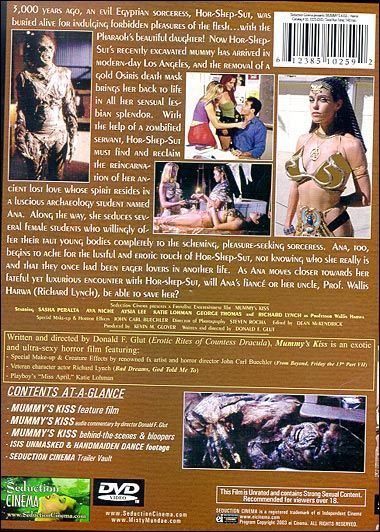Eternally cursed and mummified by the pharaoh for pursuing the love of his daughter, Hat-Em-Akhet, Hor-Shep-Sut lies in quiet slumber waiting for the day she will be reawakened. When Hor-Shep-Sut's sarcophagus is found by Dr. Wallis Harwa and opened by Professor Carter Moore, the professor's fiancée, Ana, immediately faints at the sight of the horrific, but somehow oddly familiar mummified remains. As Hor-Shep-Sut awakens from her centuries-old slumber to pursue her long lost love, viewers can rest assured that she will certainly have her fair share of erotic encounters before meeting her ultimate fate.