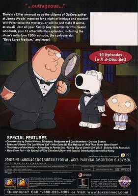 Sick, twisted, politically incorrect and Freakin' Sweet animated series featuring the adventures of the dysfunctional Griffin family. Bumbling Peter and long-suffering Lois have three kids. Stewie (a brilliant but sadistic baby bent on killing his mother and taking over the world), Meg (the oldest, and is the most unpopular girl in town) and Chris (the middle kid, he's not very bright but has a passion for movies). The final member of the family is Brian - a talking dog and much more than a pet, he keeps Stewie in check whilst sipping Martinis and sorting through his own life issues.